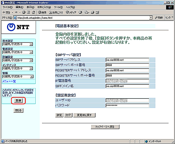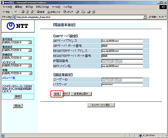IP電話対応機器設定(自動設定)][ジェット会員情報へ戻る